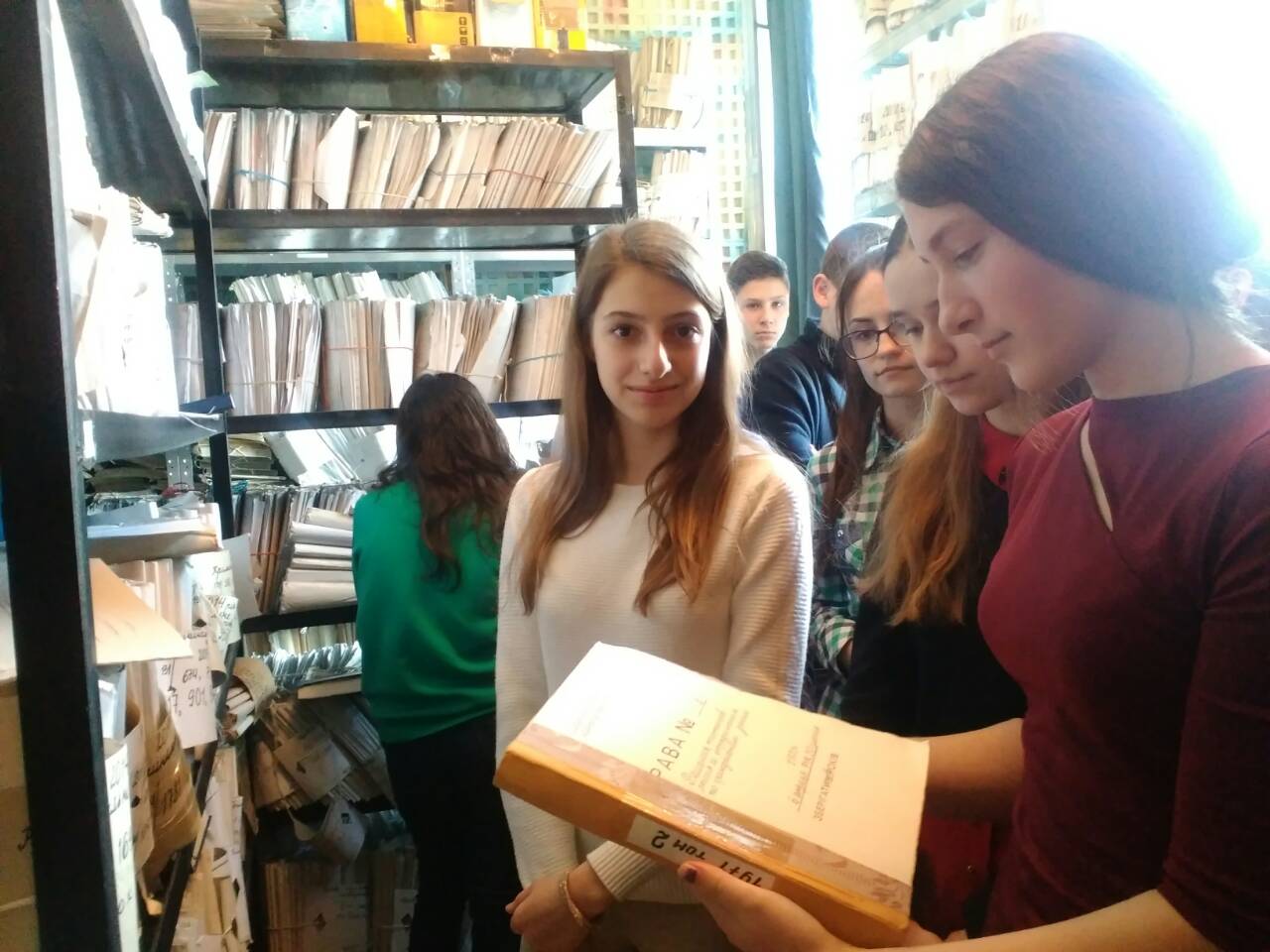По тому учні мали змогу потрапити до архіву суду, в якому зберігаються справи минулих років. Керівник апарату Самофал О.В. ознайомила гостей зі специфікою роботи в архіві, повідомила, хто і як може замовити копію рішення, який порядок надання інформації, як відбувається знищення справ, строк зберігання яких закінчився та показала найстаріші рішення суду.
