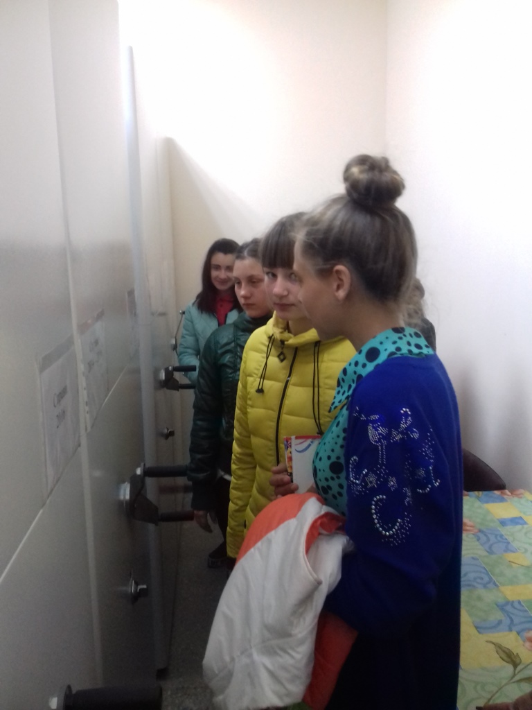 Після цього учні мали змогу побачити архів суду, в якому зберігається дуже багато справ різних категорій. Саме тут Людмила Миліївна, архіваріус Іванівського районного суду Одеської області, ознайомила учнів зі специфікою роботи архіваріуса та розповіла присутнім про порядок надання інформації та порядок видачі справ для ознайомлення які знаходяться в архіві, як відбувається знищення справ, строк зберігання яких закінчився.