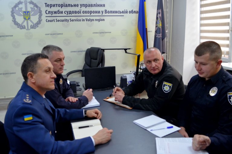 Під час наради начальник Територіального управління Служби судової охорони у Волинській області полковник Служби судової охорони Володимир Сюйва, заступник начальника Головного управління Національної поліції у Волинській області Сергій Козак та начальник патрульної поліції Волинської області Андрій Крутень обговорили питання взаємодії в разі проведення судових засідань, які викликають значний суспільний резонанс.