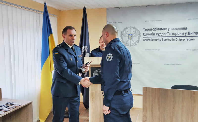 Після проголошення слів Присяги з вітальним словом до співробітників звернувся начальник Територіального управління Служби судової охорони у Дніпропетровській області полковник Служби судової охорони Сергій Швачка.