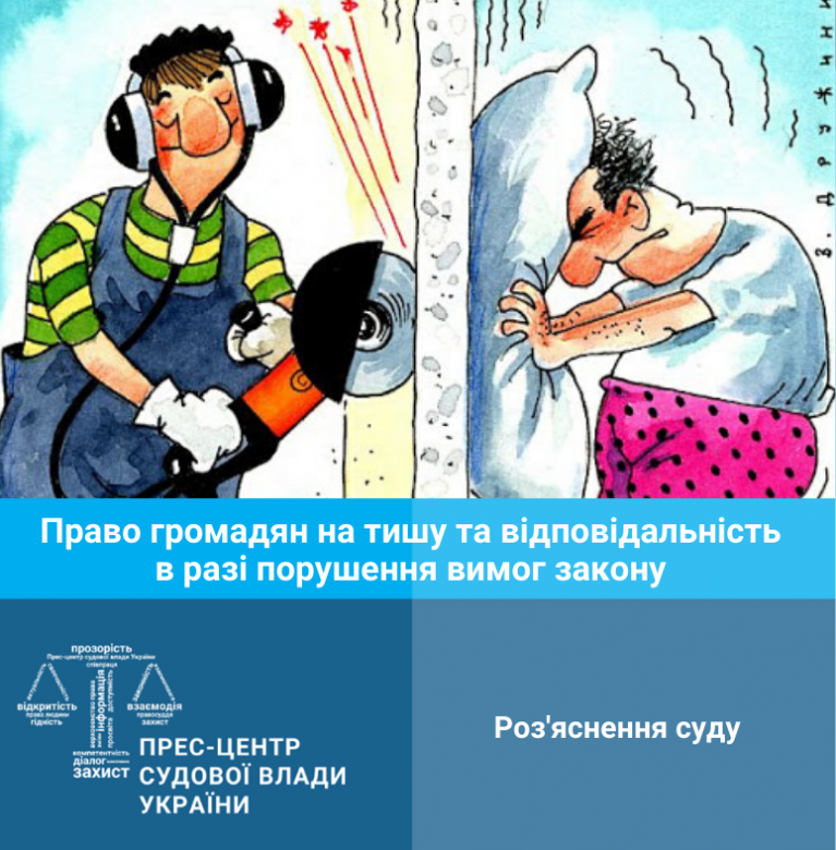 Законом України забороняється з 22:00 до 8:00 користуватися звуковідтворювальною апаратурою та іншими джерелами шуму. Це стосується й шуму під час проведення ремонтних робіт. Заборона поширюється також на святкові й неробочі дні.